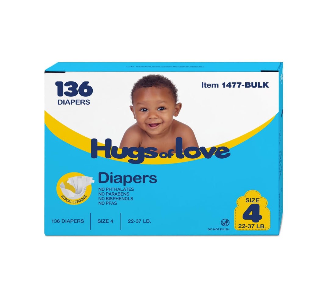 DynaCare Hugs of Love Diapers are designed from soft, breathable materials with a highly absorbent core, offering reliable protection and gentle comfort for delicate skin. The diapers feature a convenient wetness indicator to allow for easy monitoring.